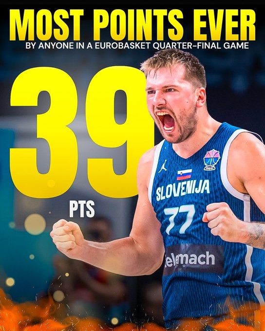 根据数据统计,东契奇此役39分,这是欧锦赛1/4决赛历史单个球员的得分纪录。